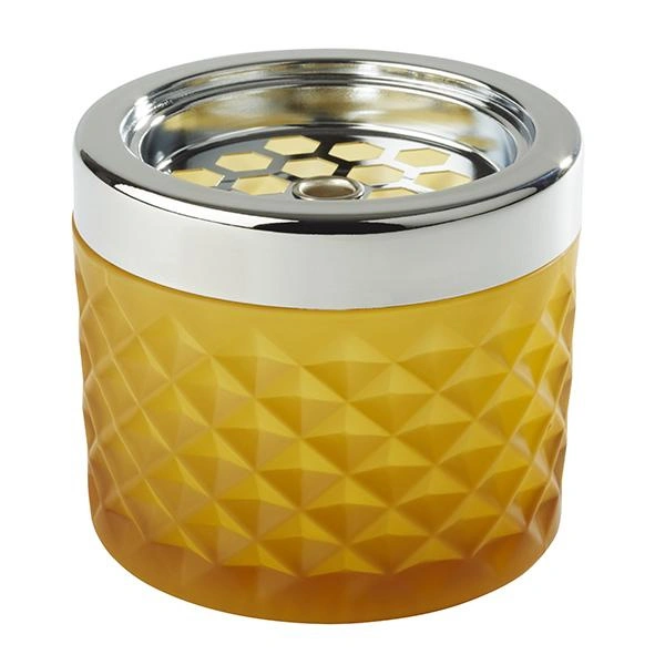 Popelník NEBULA ve žluté barvě je stylový a moderní prvek vybavení, ideální jak pro domácí použití, tak i do gastronomických provozoven nebo kanceláří. Vyznačuje se pevnou konstrukcí z chromovaného kovu a matného skla, díky čemuž spojuje odolnost, funkčnost a originální vzhled. Použití bajonetového zámku zajišťuje pohodlné používání a snadné čištění popelníku.