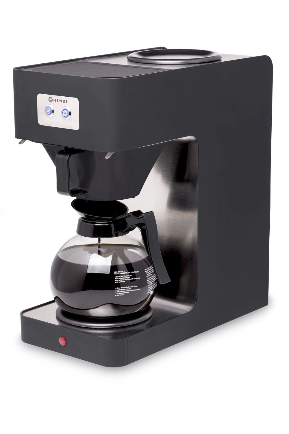 Kávovar HENDI 208533 je vyroben z vysoce kvalitních materiálů – hlavní kryt je kombinací odolného polypropylenu a gumové vrstvy, což chrání zařízení před poškozením a usnadňuje čištění. Skleněná konvice je vybavena pohodlným držadlem a polypropylenovým víkem, což umožňuje bezpečné přenášení a servírování kávy. Dva nezávislé topné systémy umožňují jak ohřívání již připraveného nápoje, tak i přípravu další porce. Kontrolka informuje o ukončení procesu vaření, což zvyšuje komfort používání.