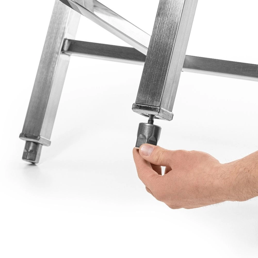 - Nerezová ocel jako podstavec – garantuje stabilitu a dlouhou životnost konstrukce i při každodenním, intenzivním používání v profesionálních kuchyních a masokombinátech.