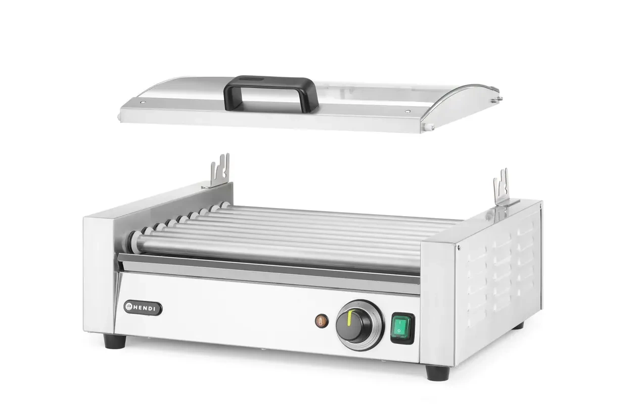 Válečkový ohřívač na párky, jednodílný s poklopem, 9 válečků, 0,79 kW, 230 V HENDI 268643