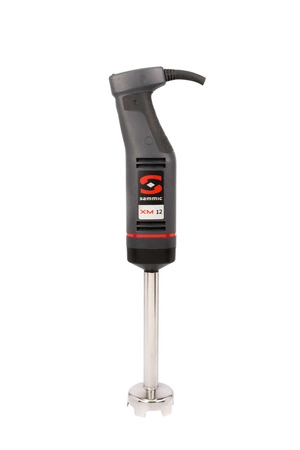 Ruční mixér SAMMIC s míchacím ramenem. Určeno pro míchání v nádobách do 10 litrůów. Nóy se třemi noži, vyrobenými z kalené nerezové oceli, s odolným ostřím Záštita nože o průměru 65 mm. Přídržná plocha je pokryta protiskluzovým materiálem. Počet otáčekós je nastavitelný od 1500 do 15000 ot.