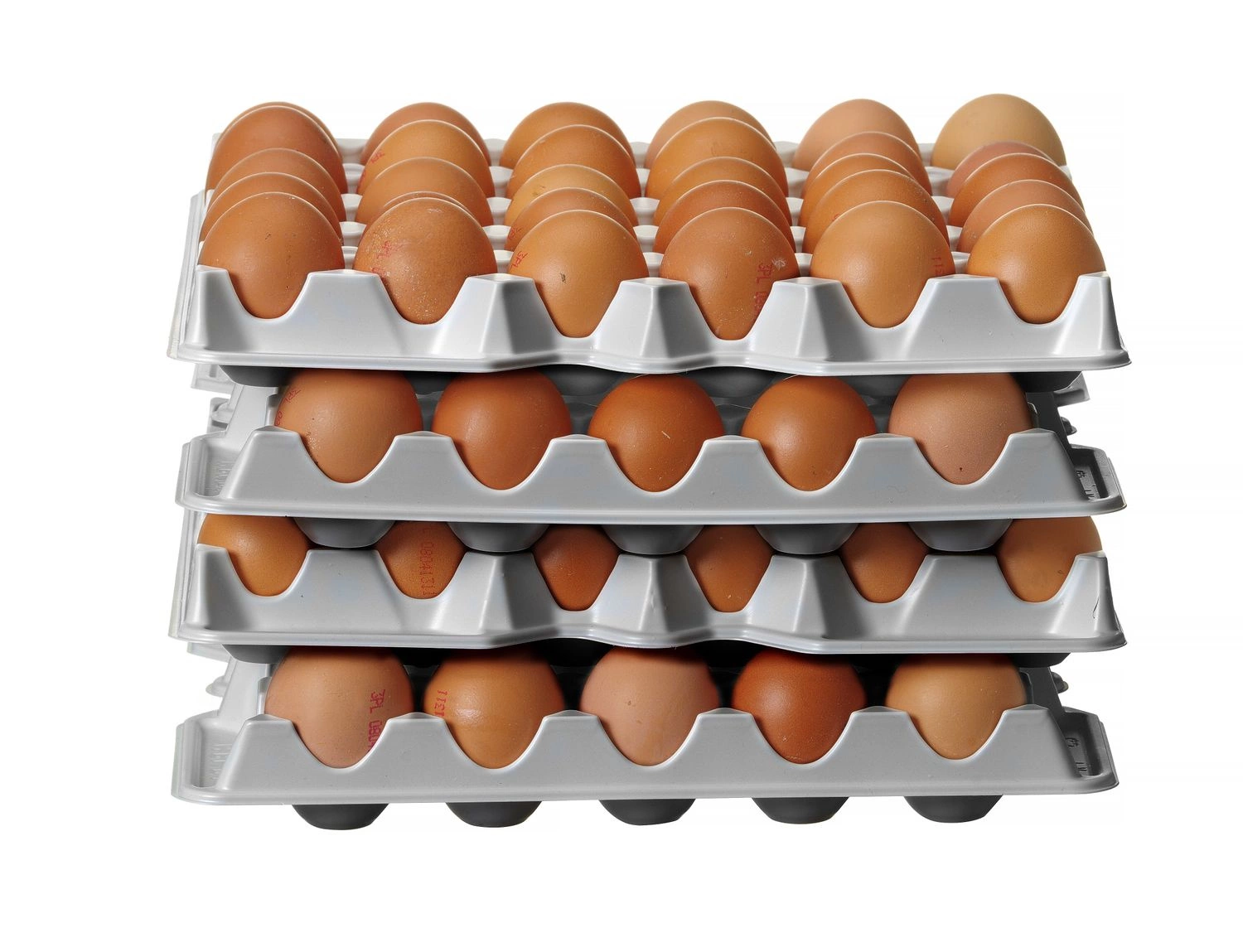 Podnosy jsou vyrobeny z pevného PET materiálu, díky čemuž jsou velmi odolné. Každé z nich pojme 30 vajec a lze je skládat na sebe.