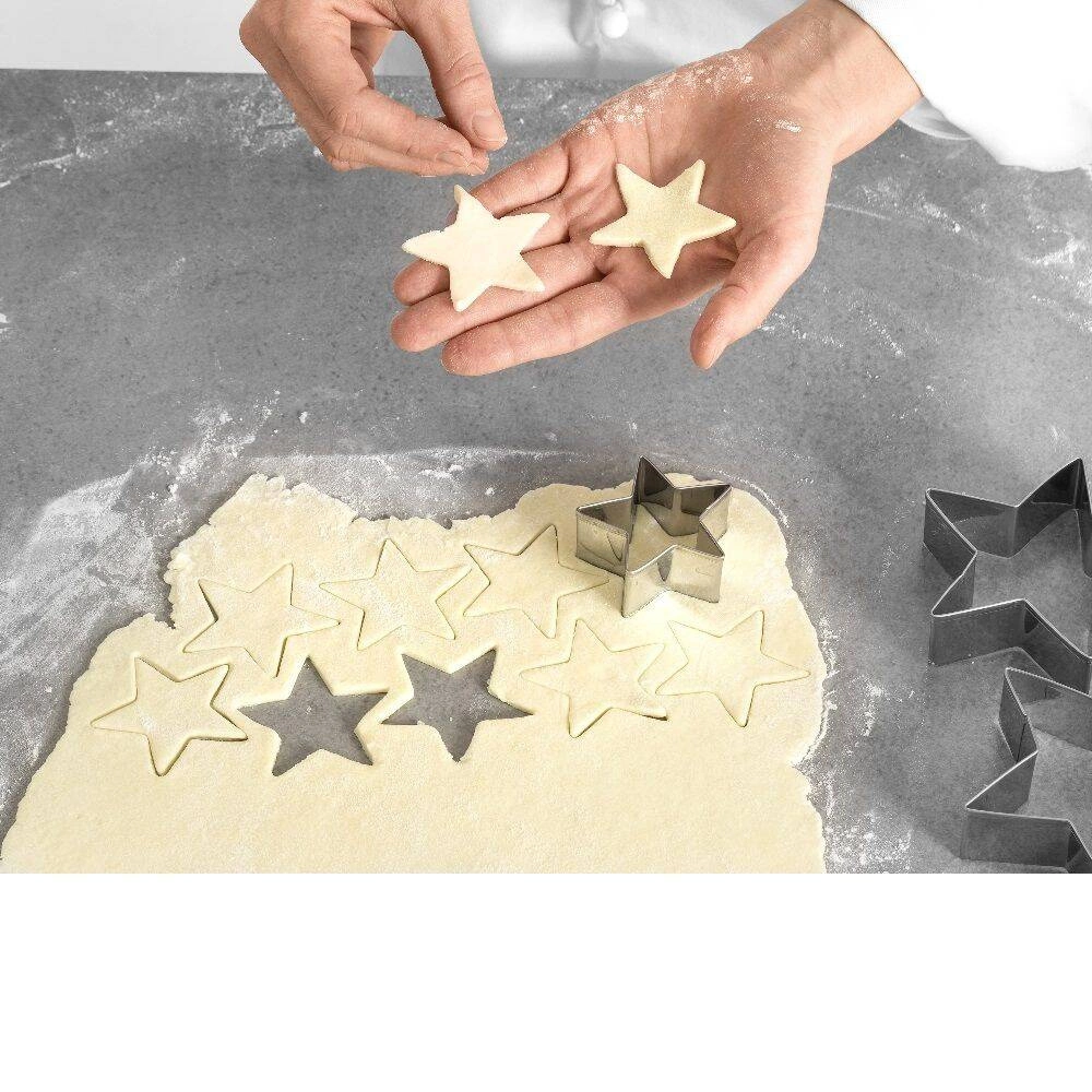 • Různé velikosti – sada obsahuje devět vykrajovátek v různých velikostech, což umožňuje vykrajovat hvězdičky přizpůsobené individuálním potřebám. Díky tomu lze vytvářet efektní, vrstvené dekorace nebo sušenky různých rozměrů.