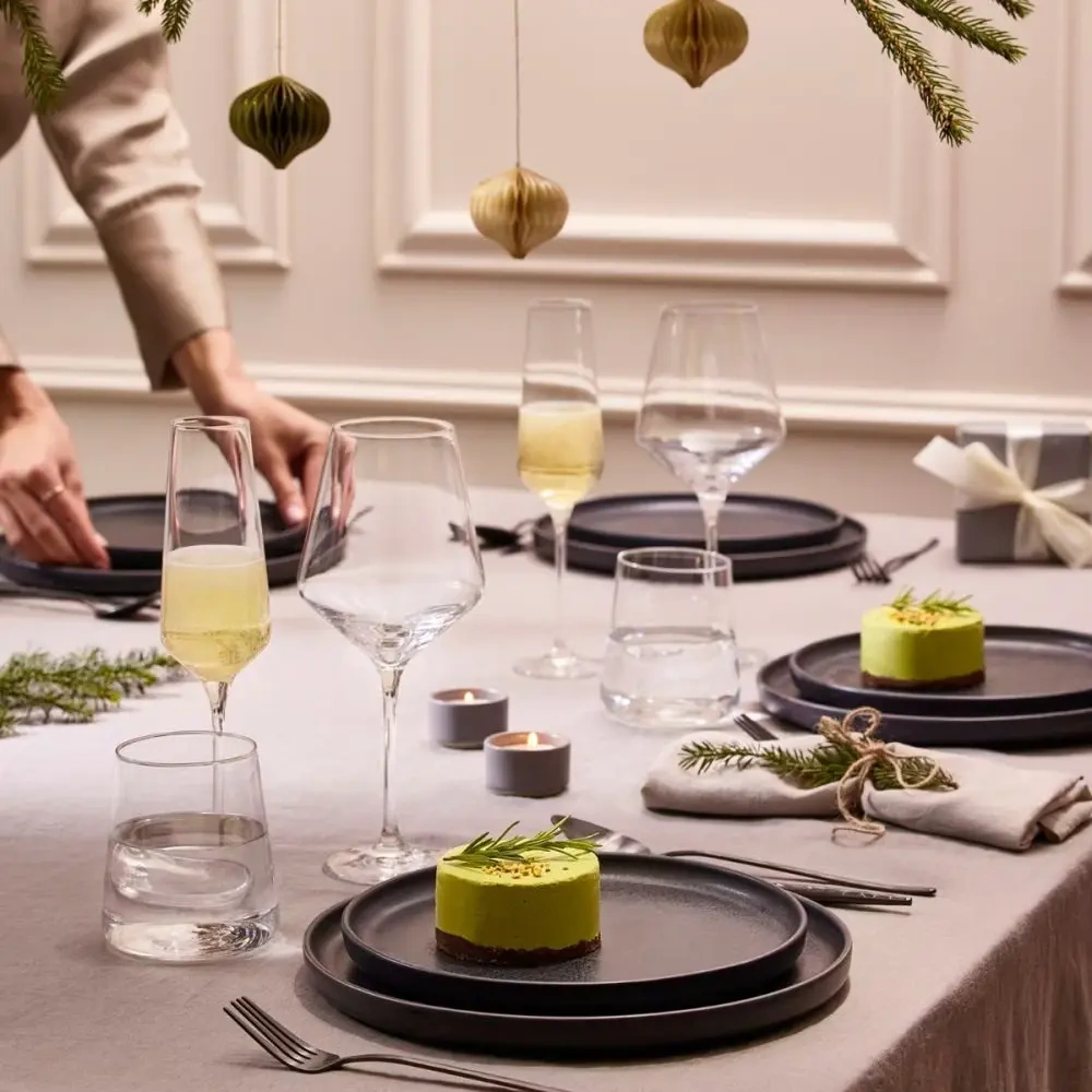 • Výška skleniček na šampaňské: 248 mm – vysoký, úzký tvar umožňuje dlouhodobé udržení bublinek.