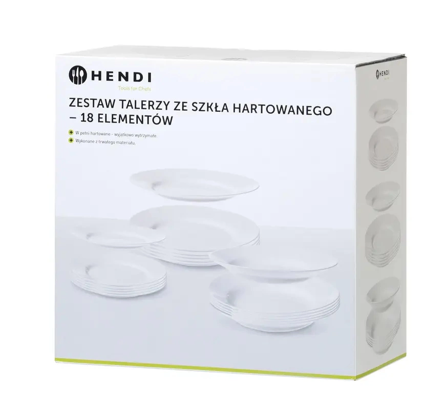 Sada talířů značky Hendi je kombinací odolnosti, funkčnosti a elegance. Je ideální pro restaurace, hotely nebo bufety a díky jedinečnému materiálu Opal zaručuje dlouhou životnost.