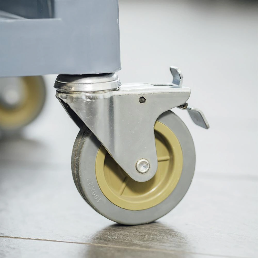 • Otočná kolečka s brzdami – čtyři kolečka zajišťují plynulý pohyb vozíku a zabudované brzdy garantují stabilitu při zastavení.