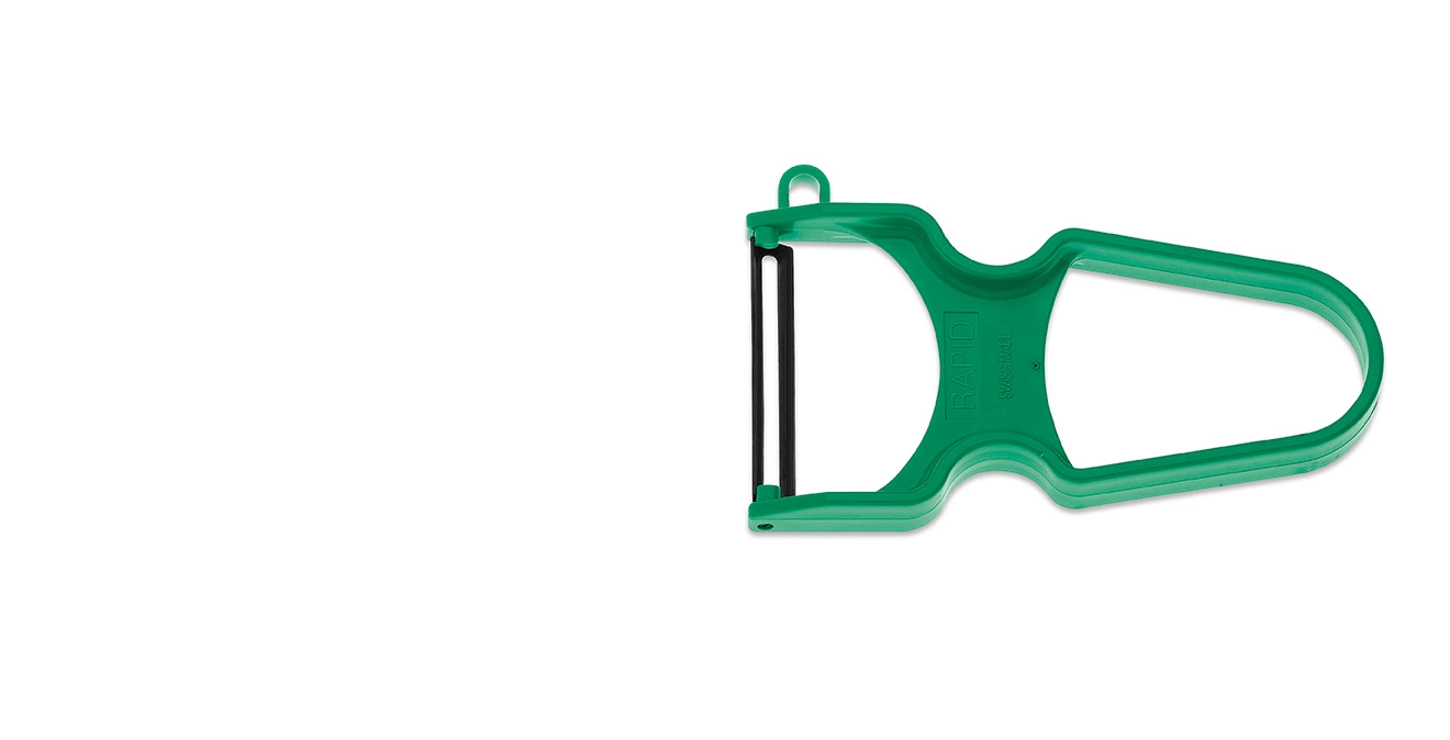 - Pohyblivý nůž, který se dokonale přizpůsobí tvaru loupaného materiálu, což usnadňuje rychlé a účinné odstranění slupky