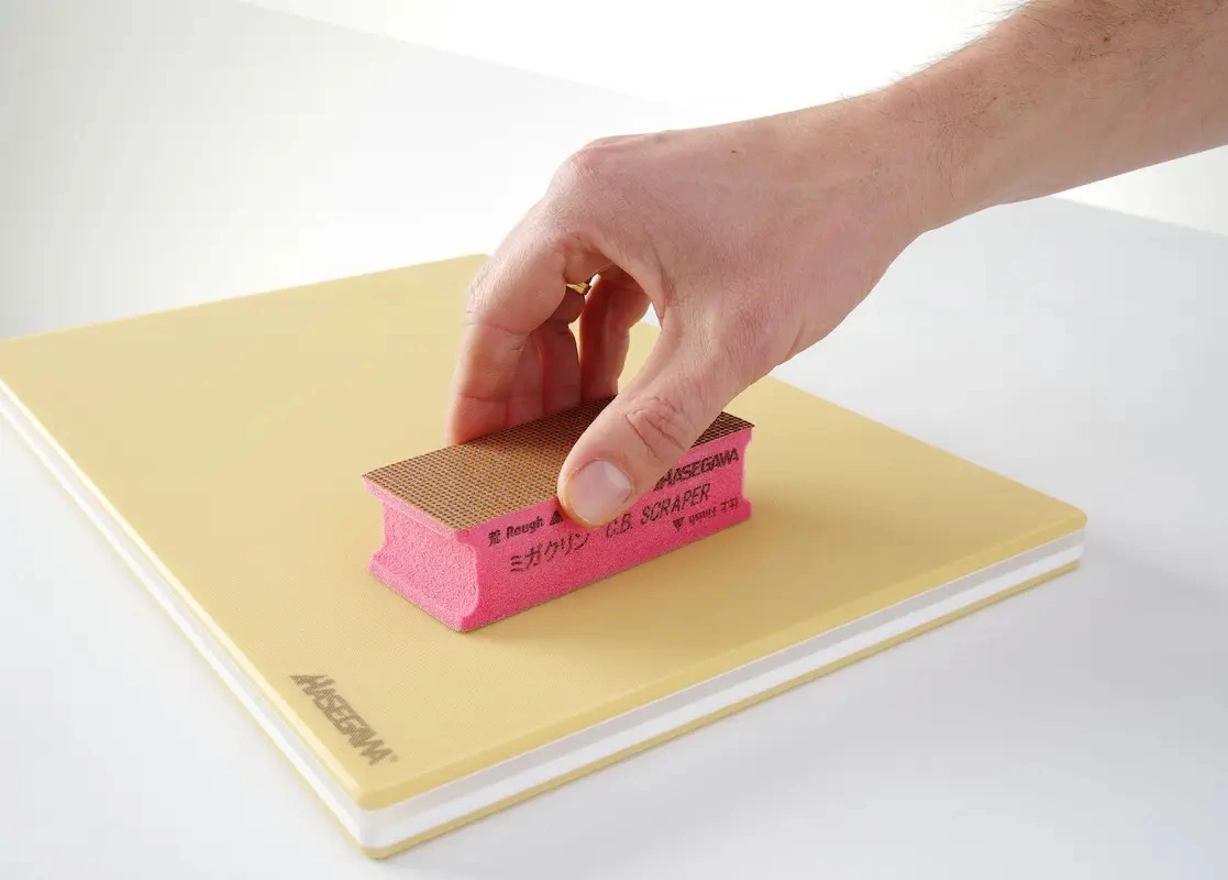 Oboustranné použití – jedna strana odstraňuje nečistoty a nerovnosti, druhá leští a vyhlazuje povrch. Odolná abrazivní vrstva – vyrobená z oxidu hlinitého a stearanu zinečnatého. Bezpečný pro povrch desek – nepoškozuje strukturu materiálu a prodlužuje jeho životnost. Jádro – vyrobeno z polyetylenové pěny. Způsob použití: Před použitím škrabky je třeba povrch desky navlhčit. Určeno pro desky Hasegawa a HACCP HENDI. Škrabka na kuchyňské desky Hasegawa je nezbytným doplňkem pro profesionály a milovníky vaření, kteří dbají na čistotu a trvanlivost svého vybavení. |