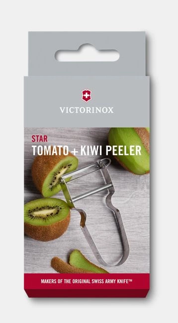STAR loupač od Victorinox je praktický a spolehlivý kuchyňský nástroj, speciálně navržený pro loupání zeleniny a ovoce, například kiwi nebo brambor. Je vybaven dvěma vroubkovanými čepelemi z vysoce kvalitní nerezové oceli a zajišťuje přesné a účinné loupání bez plýtvání dužinou.