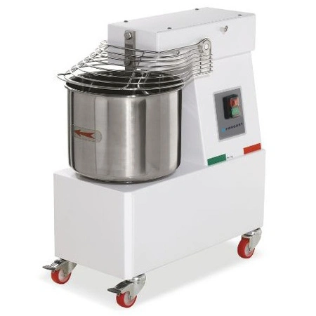 Spirálový mixér FORGAST FG10423 byl navržen s ohledem na profesionální použití v pekárenském a cukrářském průmyslu. Díky kompaktním rozměrům a mobilitě (kolečkům) lze zařízení snadno přesouvat a míchání většího množství těsta v krátkém čase umožňuje efektivní práci i při intenzivním využití. Stálá otáčivá rychlost a oddělovací tyč zajišťují opakovatelnost a vysokou kvalitu připravované hmoty. Konstrukce z nerezové oceli zaručuje dlouhou životnost a snadnou údržbu.