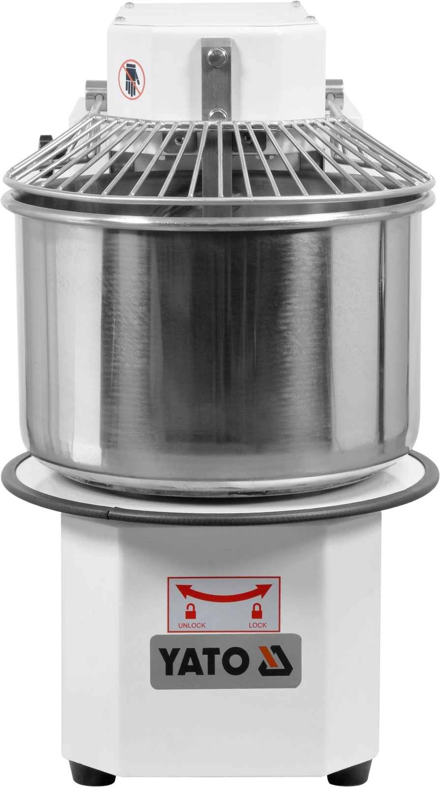 Spirálový mixér YATO s odnímatelnou mísou o objemu 30 litrů a průměru 41 cm s naklápěcí hlavou. Spotřebič je ideální pro hnětení těžkých těst, jako je pizza, chléb, knedlíky, koblihy. Tento mixér je navržen s ohledem na funkčnost a bezpečnost a splní potřeby profesionálních kuchařů. Mixér je vyroben z hliníku a oceli a lakován v bílé barvě, takže nejenže vypadá esteticky, ale také se snadno udržuje v čistotě. Mísa a další příslušenství z nerezové oceli jsou bezpečné pro styk s potravinami. Maximální zatížení těsta je 12 kg. Vestavěný časovač umožňuje nastavit dobu provozu až na 60 minut. Přepnutí do manuální polohy umožňuje nepřetržitý provoz. Rozměry přístroje jsou 76x80x44 cm.