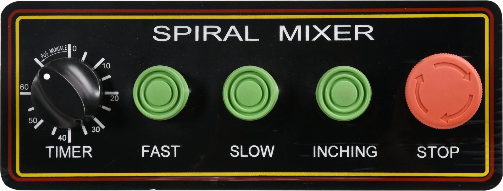 • Výkon a síla: Mixér je poháněn motorem o příkonu 3100 W, který je napájen napětím 380-415 V a poskytuje silný pohon pro hnětení těžkých těst. Díky ozubené převodovce se spotřebič vyznačuje dlouhou životností a spolehlivostí a přenos pohonu pomocí hnacího řemene usnadňuje údržbu.