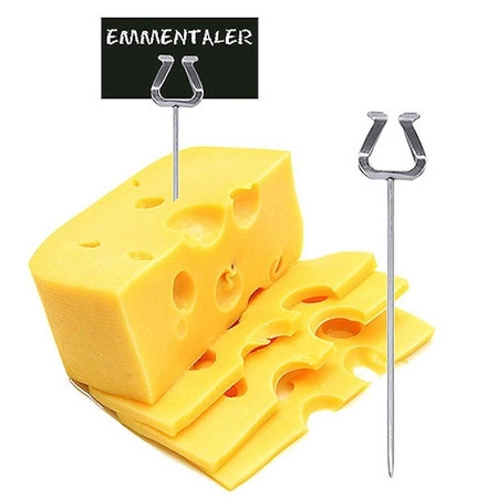 - Možnost zapíchnutí – konstrukce umožňuje pohodlné zapichování stojanu do různých produktů, např. sýry, maso nebo pečivo, což zvyšuje univerzálnost použití.