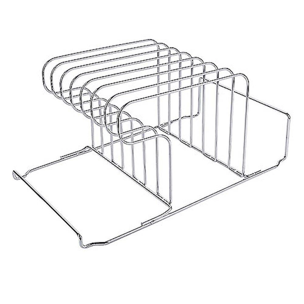 Stojan je vyroben z odolné nerezové oceli, která je odolná proti poškrábání a vlhkosti. Otvory a přepážky byly navrženy tak, aby stabilně držely pokličky i prkénka a zabránily jejich převrácení. Kompaktní rozměry zajišťují, že stojan se vejde na většinu kuchyňských pracovních ploch, aniž by omezoval prostor.