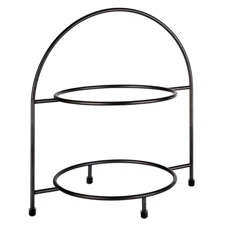 Stojan se skládá ze dvou stabilních kroužků na talíře, z nichž každý pojme nádobí o maximálním průměru 27 cm, přičemž vnitřní kroužek má průměr 18 cm. Pevná základna zajišťuje bezpečnost i při plném zatížení a minimalistické provedení nepůsobí rušivě na vzhled stolu. Jednoduchá konstrukce usnadňuje údržbu a rychlou přípravu k dalšímu použití.