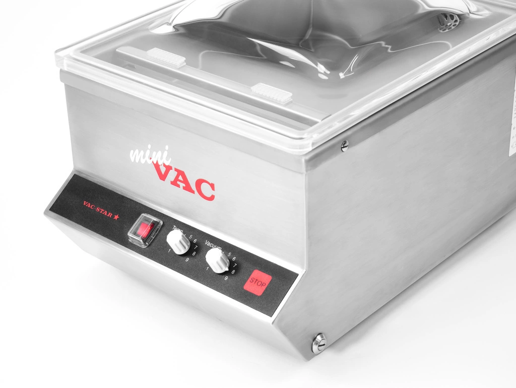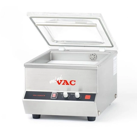 MiniVac firmy Vac-Star je nejmenší profesionální vakuovací stroj na trhu, ideální pro gastronomii, řezníky, lovce, rybáře a další odvětví, která vyžadují efektivní a trvanlivé balení produktů. Je vynikající volbou pro podniky, které chtějí prodloužit čerstvost svých výrobků a připravovat pokrmy metodou sous-vide.