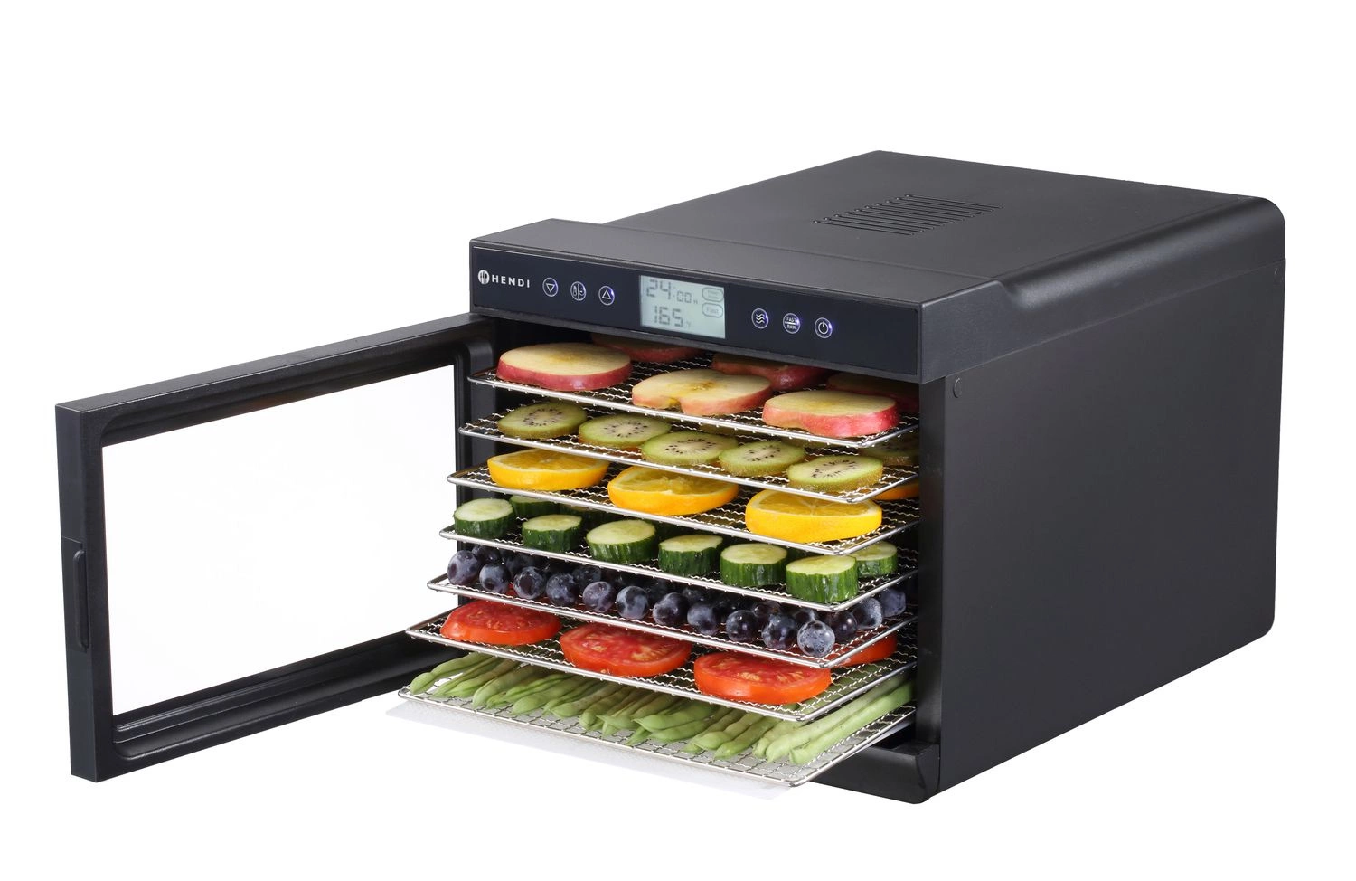 Sušička potravin Kitchen Line HENDI je profesionální zařízení určené pro efektivní sušení potravin, jako jsou ovoce, zelenina, bylinky, maso nebo ryby. Díky použití moderních technologií a odolné konstrukci je vhodná jak pro gastronomii, tak pro domácí použití. Vyniká velkou sušicí plochou, tichým chodem a intuitivním ovládáním.