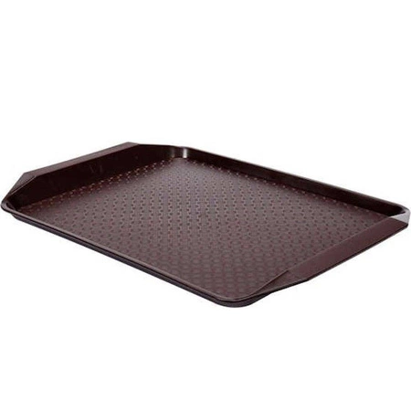 Číšnický podnos pro rychlé občerstvení Obdélníkový, 43x30 cm. Hnědá barva. Vyrobeno z vysoce kvalitního polypropylenu, který zaručuje velkou tuhost a odolnost . Zásobník má okraje, které zabraňují vypadávání výrobků. Podnos je ideální do barů, na stolyóa podobně. Snadno se udržuje v čistotě.