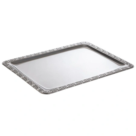 Produkt je vyroben z vysoce kvalitní nerezové oceli 18/0, což zajišťuje jeho odolnost proti poškrábání, poškození a snadnou údržbu. Dekorativní okraj podtrhuje estetiku tácu a činí jej velmi atraktivním na stole. Obdélníkový tvar usnadňuje přenášení a umisťování různých druhů nádobí.