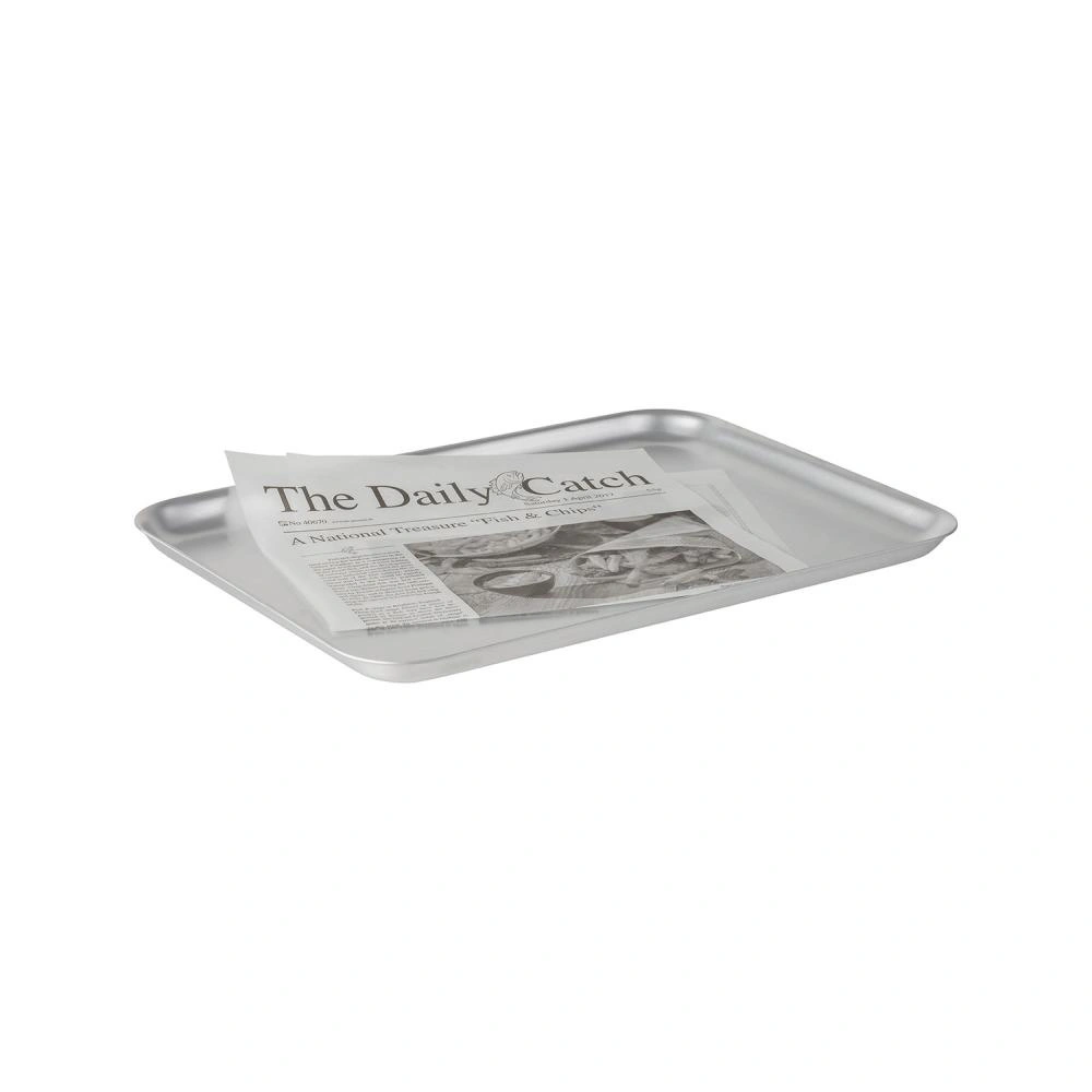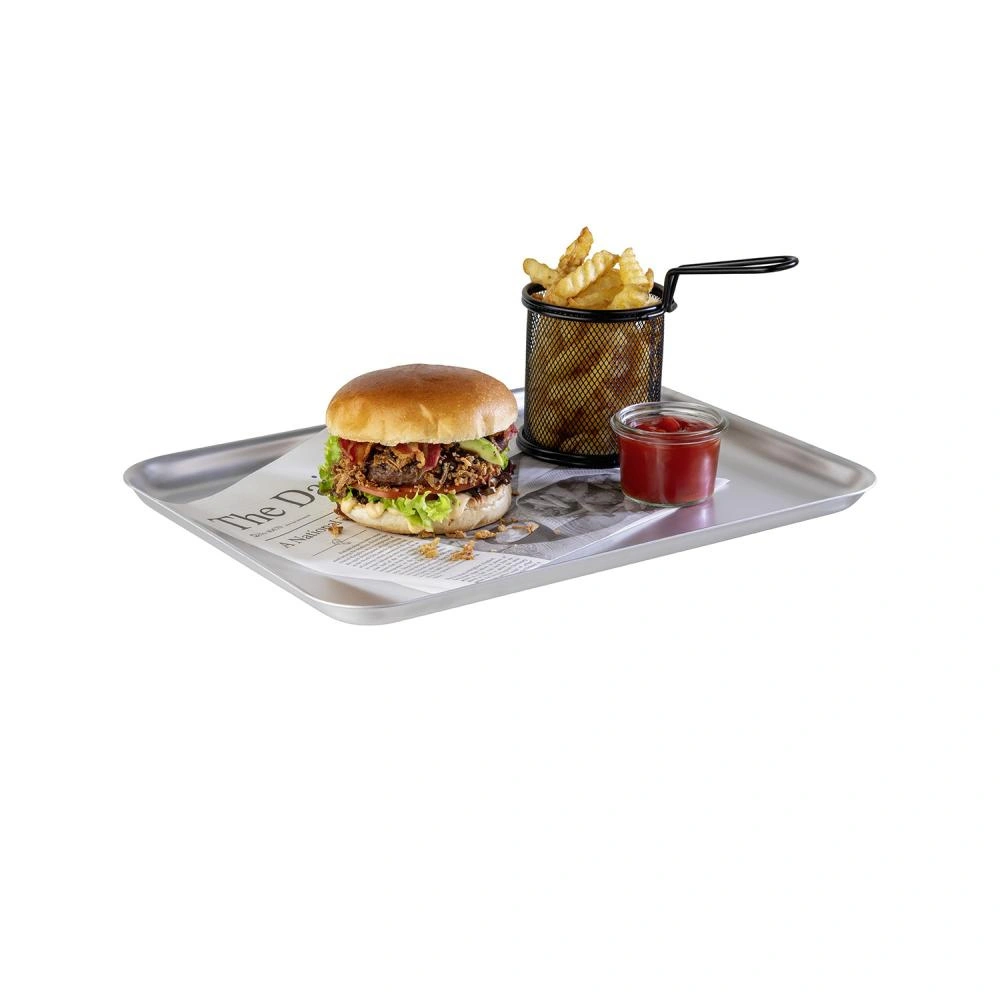 Tác je vyroben z vysoce kvalitního hliníku, což zajišťuje jeho lehkost a odolnost proti deformacím a mechanickému poškození. Hladký povrch usnadňuje čištění a nízký okraj umožňuje pohodlné vyjímání a nabírání pokrmů. Obdélníkový tvar dělá produkt funkčním a snadno skladovatelným.