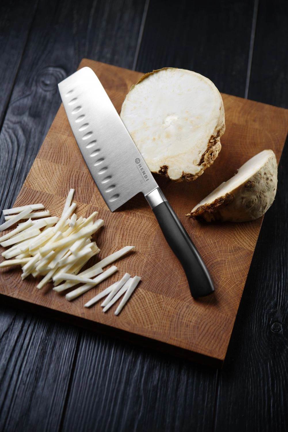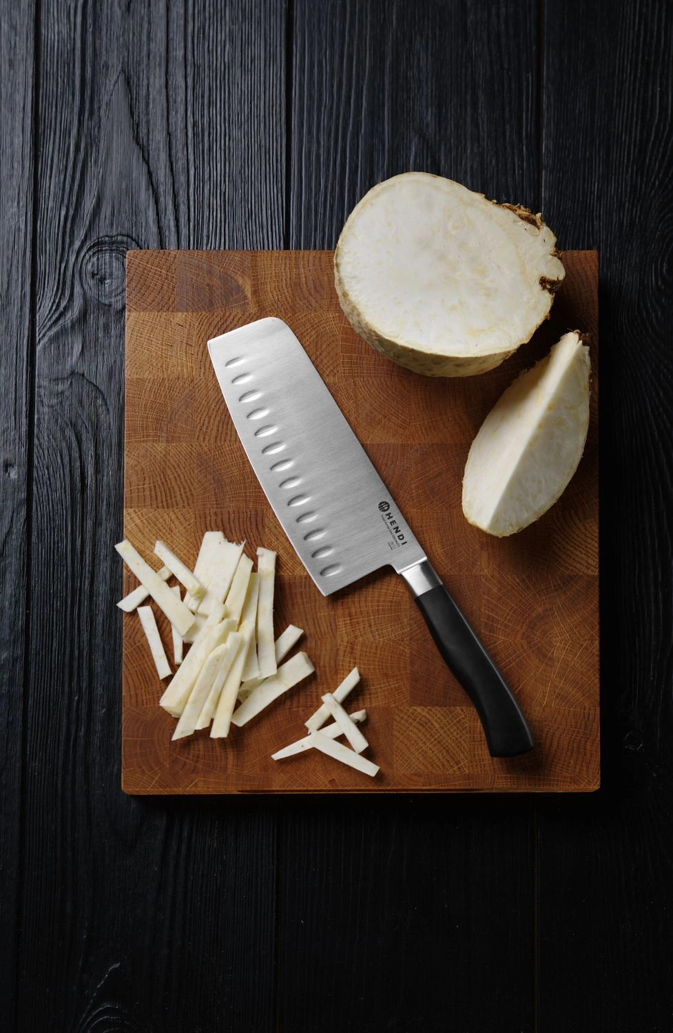 Kulový sekáček Profi Line. Čepel je vyrobena z vysoce kvalitní německé uhlíkové oceli. Vykovaná za tepla z jednoho kusu oceli. Speciální slitina chrom-molybden-vanadová ocel zaručuje vynikající řezné vlastnosti, ostrost, snadné broušení a odolnost proti znečištění. Hygienická konstrukce rukojeti zabraňuje hromadění zbytků v místech spojů.