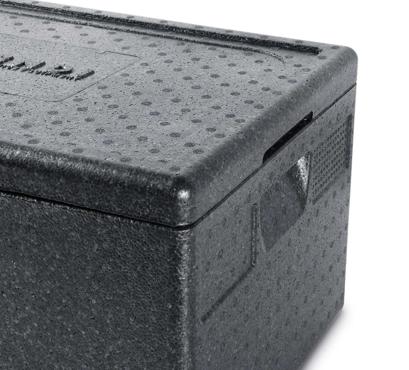 Izolovaný kontejner 600×400mm s objemem 80 litrů. Vyrobeno z pěnového polypropylenu EEP. Tělo a víko v černé barvě. Má ergonomické přepravní rukojeti.