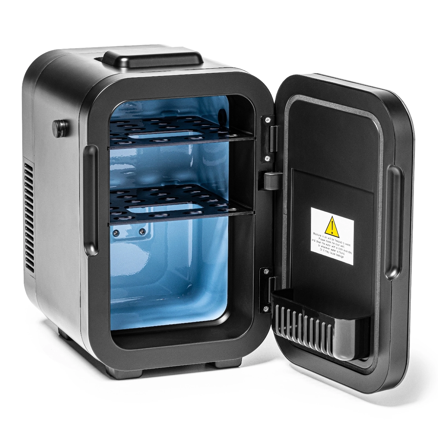• Kompaktní rozměr a kapacita 8 litrů: Navzdory malým vnějším rozměrům lednice pojme až 8 plechovek o objemu 330 ml nebo kosmetiku, léky či malé potraviny. Usnadňuje to organizaci prostoru všude tam, kde je důležitá mobilita.