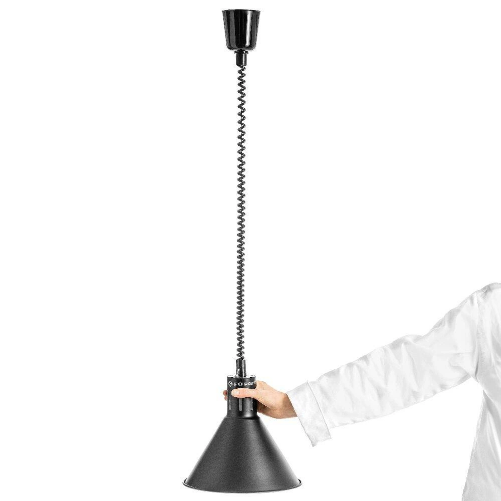 Ohřívací lampa Forgast byla navržena pro intenzivní používání v gastronomii. Pevná kovová konstrukce a černé provedení jí dodávají moderní vzhled a zaručují dlouhou životnost. Mechanismus nastavení výšky umožňuje snadné umístění lampy nad pokrmy, což zvyšuje její funkčnost v různých pracovních podmínkách. Součástí sady je topná žárovka, která vydává teplé bílé světlo – nejen ohřívá, ale také zvýrazňuje estetické přednosti servírovaných jídel.