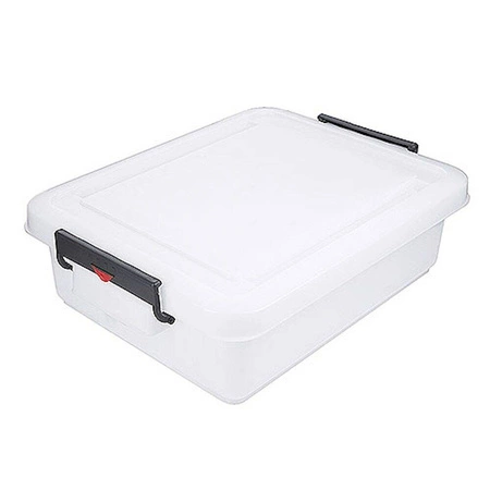 - Bezpečné skladování – Speciální blokovací rukojeti zaručují těsné uzavření, chrání obsah před znečištěním a před nechtěným otevřením během přepravy.