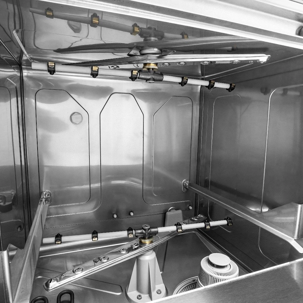 - Rychlé mycí cykly – Myčka nabízí dva pracovní cykly: 90 a 180 sekund, díky čemuž si bleskově poradí s velkým množstvím nádobí. To umožňuje plynulý provoz kuchyně i v době špičky.