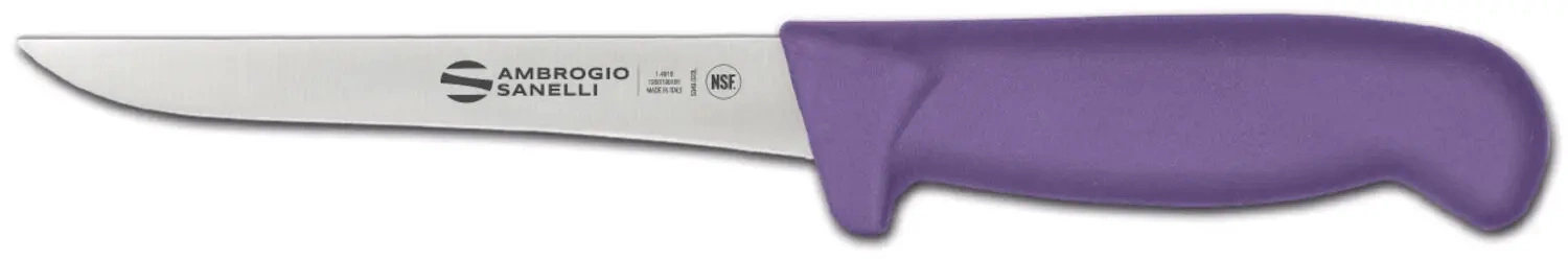 Vykosťovací nůž Supra Colore od Ambrogio Sanelli byl navržen tak, aby optimalizoval práci v kuchyni v souladu s normami HACCP. Je to nepostradatelný nástroj pro profesionální kuchaře a řezníky, který umožňuje přesné oddělení masa od kostí. Díky svému vyspělému designu a ergonomické rukojeti splňuje nejvyšší standardy funkčnosti a odolnosti v intenzivních pracovních podmínkách.