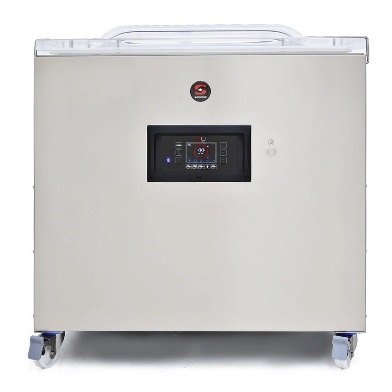 Vakuový balicí stroj SU-806P LL od společnosti SAMMIC je moderní dvoukomorová jednotka pro hermetické balení potravin v profesionálních kuchyních. Balicí stroj SU-806P LL je vybaven dvojitou těsnicí linkou a vysoce výkonnou vakuovou olejovou pumpou Busch, která zaručuje maximální vzduchotěsnost a trvanlivost balení. Je ideální pro bezpečné balení tekutin, výrobků s vysokým obsahem vody a také choulostivých potravin.