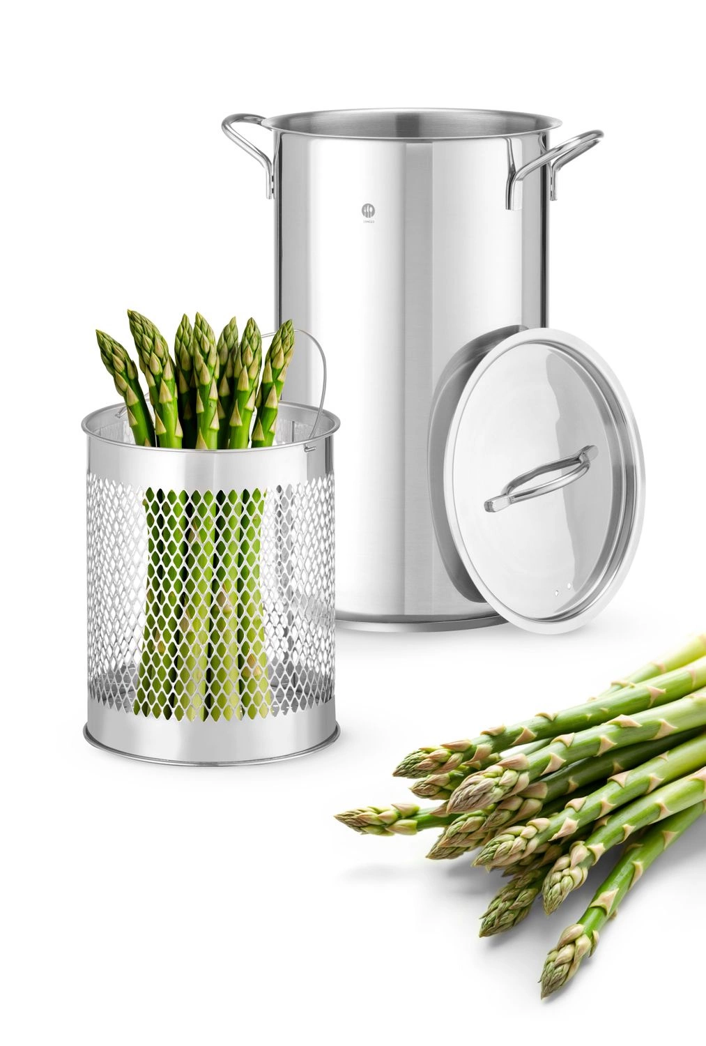 Vařič chřestu Profi Line o objemu 5,5 l. Vyrobeno z nerezové oceli se saténovou povrchovou úpravou.