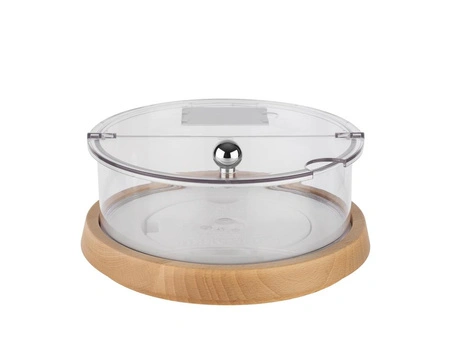 - Moderní a praktický design – průhledná mísa umožňuje atraktivní prezentaci obsahu, zatímco dřevěná základna dodává celku eleganci.