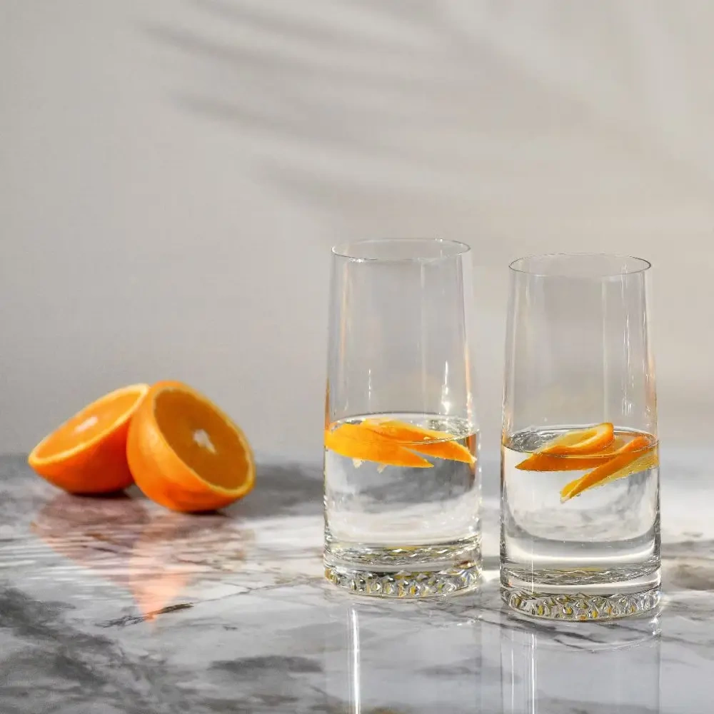 Sada se skládá ze šesti vysokých sklenic vyrobených z vysoce kvalitního Crystalline skla. Každá sklenice má výrazně označené, silné dno s ledovou strukturou, která nejen podtrhuje estetiku, ale také zvyšuje stabilitu nádoby na stole. Pevné stěny zajišťují trvanlivost a odolnost proti poškození a ergonomický tvar umožňuje, že sklenice dobře padnou do ruky. Díky možnosti mytí v myčce je jejich údržba mimořádně snadná, což ocení jak domácí uživatelé, tak profesionálové.