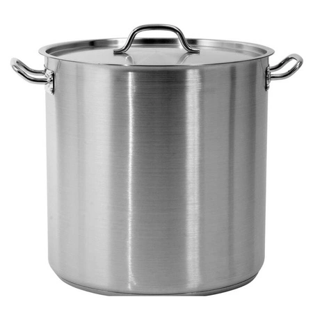 Vysoký hrnec s poklicí o objemu 50,3 l. Vyrobený z vysoce kvalitní nerezové oceli 201, byl navržen s ohledem na intenzivní používání v gastronomickém prostředí. Vnitřek hrnce má třívrstvé, kapslové dno o tloušťce 4 mm, vyrobené z hliníku, které zajišťuje vynikající tepelnou vodivost. Vnější vrstva dna je chráněna nerezovou ocelí 430, což dále zvyšuje jeho odolnost. Tloušťka stěny 1 mm zaručuje nejen trvanlivost, ale také rovnoměrné rozložení tepla, což příznivě ovlivňuje kvalitu připravovaných pokrmů.