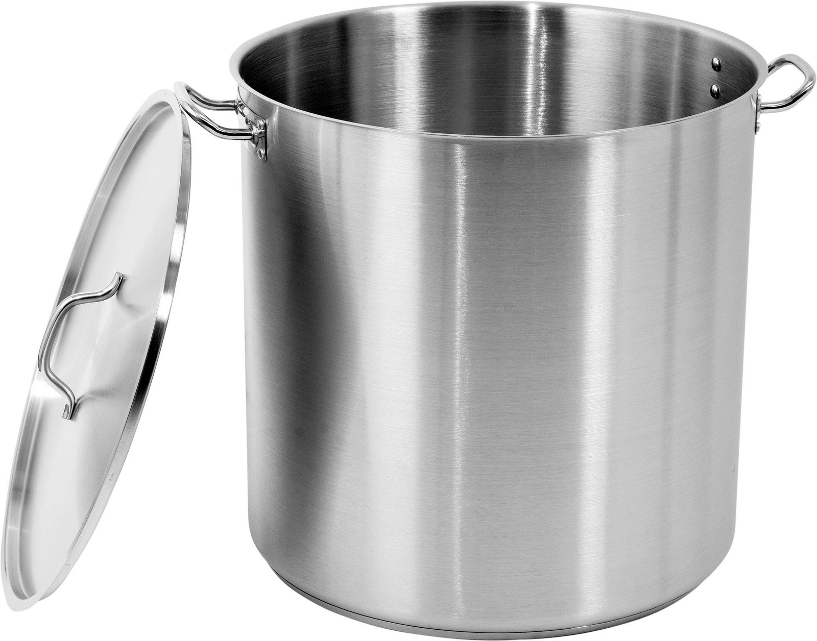 Vysoký hrnec s poklicí o objemu 98,2 l. Vyrobený z vysoce kvalitní nerezové oceli 21/0. Kapslové dno o tloušťce 6,2 mm zajišťuje rovnoměrné rozložení tepla po celém povrchu. Feromagnetická vložka na dně umožňuje použití hrnců na všech typech sporáků, včetně indukčních. Pevné, nezahřívající se úchyty. Stěny z oceli o tloušťce 1,2 mm.