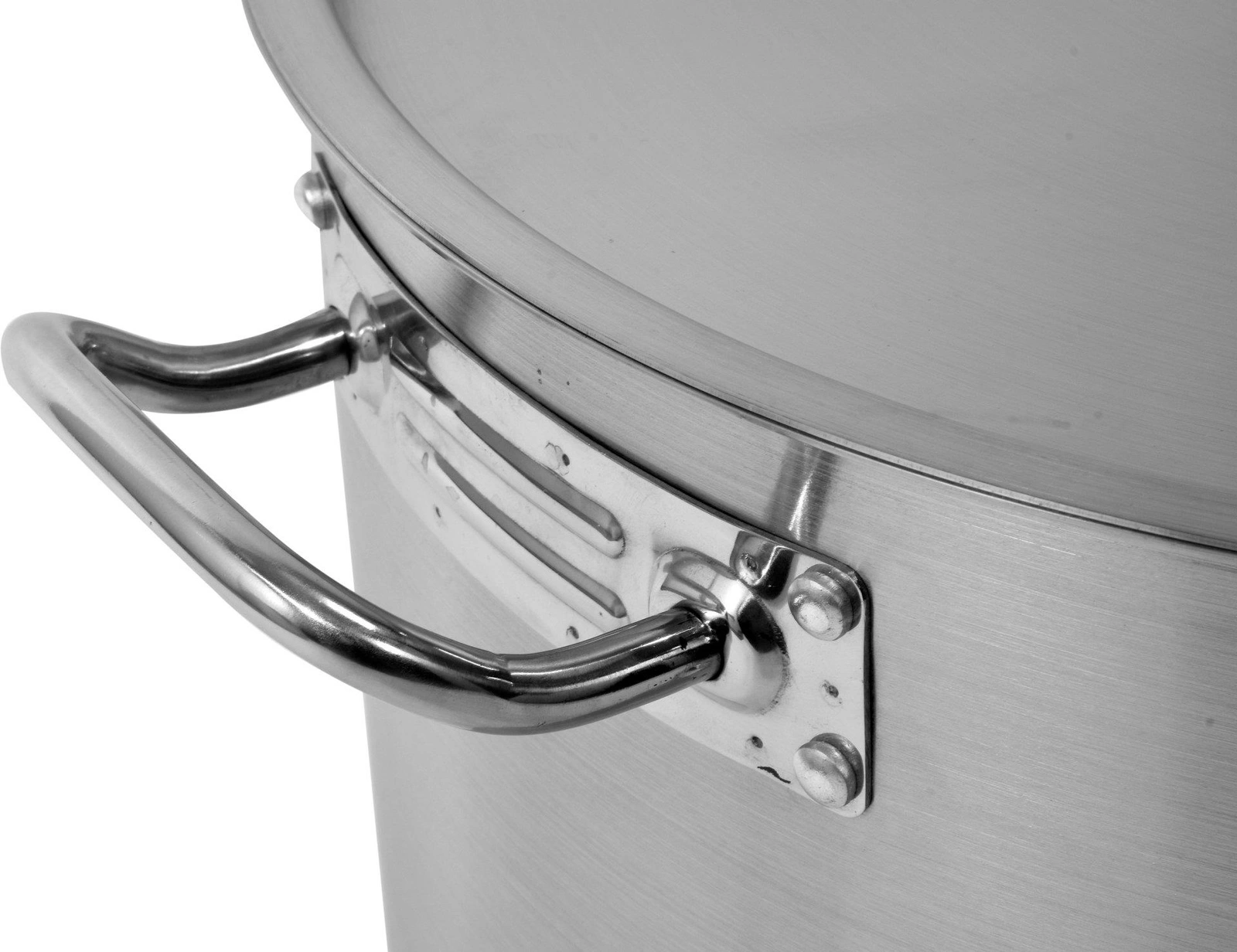 Vysoký hrnec s poklicí o objemu 71,6 l. Vyrobený z vysoce kvalitní nerezové oceli 21/0. Kapslové dno o tloušťce 6,2 mm zajišťuje rovnoměrné rozložení tepla po celé ploše. Feromagnetická vložka na dně umožňuje použití hrnce na všech typech sporáků, včetně indukčních. Pevné, nezahřívající se úchyty. Stěny z oceli o tloušťce 1,2 mm.