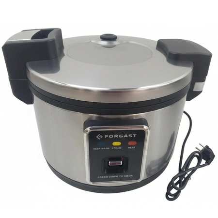 Zařízení na vaření rýže FORGAST bylo navrženo s ohledem na profesionální kuchyně, kde je důležitá spolehlivost a rychlost obsluhy. Díky inteligentnímu systému automatického přepínání režimů je rýže vždy připravena k servírování bez rizika vysušení nebo připálení. Pevná konstrukce a vysoce kvalitní materiály zajišťují trvanlivost a bezpečnost při práci. Víko otevírané z protější strany účinně chrání uživatele před horkou párou a nepřilnavý povrch vložky výrazně usnadňuje čištění zařízení.