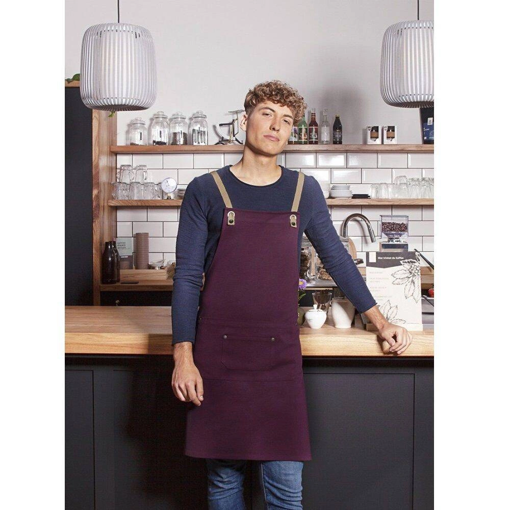 Zástěra Urban Nature X-Style s kapsou od Karlowsky. Vyrobeno  z 65 % polyesteru a 35 % bavlny. Barva lilku. Velikost 70 x 85 cm. Zástěra na šle s odnímatelnými kontrastními barevnými stuhami. Všechny stuhy lze snadno a rychle odepnout pomocí patentek a jejich nasazení na ramena uleví krku. Délku a výšku nastavíte překřížením popruhů na zádech, jejich protáhnutím přezkami a následným zavázáním. Oba popruhy lze snadno odepnout a vyprat. Uprostřed všité kapsy: 1 velká přihrádka o rozměrech 39 x 20 cm, 2 boční přihrádky na tužky a 1 malá kapsa o rozměrech 17 x 11 cm. Lze prát při teplotě do 60 ° C. Nebělit. Žehlete při teplotě do 150 ° C.